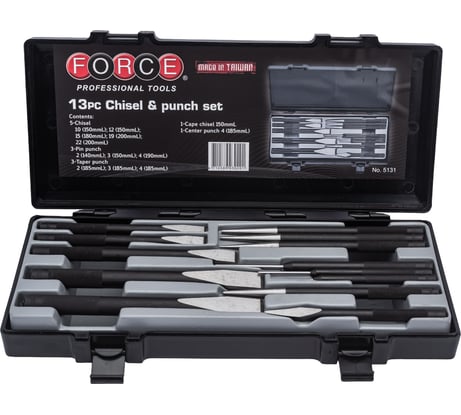 Набор выколоток, зубила и крейцмейселя FORCE 5054 на 5 предметов. Все инструменты изготовлены из качественной углеродистой стали, что обеспечивает их прочность и долговечность. Выколотки различной длины и диаметров позволяют выбрать оптимальный инструмент для конкретной задачи. Зубило и крейцмейсель имеют удобные ручки, которые не скользят в руке, обеспечивая точный контроль над процессом обработки металла. Рекомендую данный набор всем, кто занимается слесарными работами и нуждается в качественных и надежных инструментах для обработки металла.