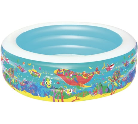 Хочу сказать ,что бассейн необычный. Вода наливается внутрь! И ребенок сидит на водной подушке. Нам нужен был обычный где ребенок сидит в малом количестве воды. То что вода наливается внутрь увидели на упаковке и не стали даже распаковывать.