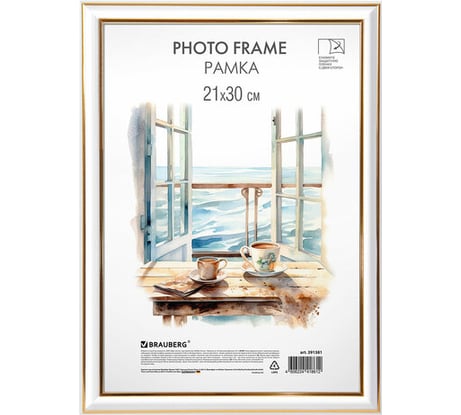 Качественная рамка, акрил не бьётся — удобно для офиса. Бело-золотая отделка смотрится аккуратно, подойдет под любой интерьер.
