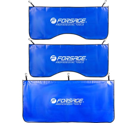 Изготовоены аккуратно. 3 штуки, две на крылья, одна - на капот или багажник. Изнанка мягкая, ворсистая. Лицевая поверхность - как клеенка, но мягкая, голубого цвета с налписями "Forsage". Есть пластиковые крючки для зацепа, внутрь вшиты магнитики.
