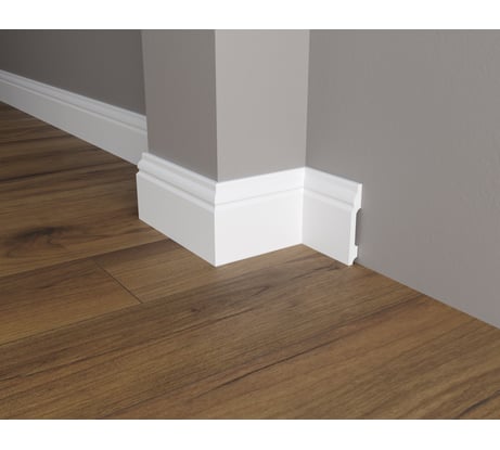 В начале осени заканчивали отделочные работы в своем загородном доме и купили эти плинтусы, так как они отлично подходили под цвет нашего износостойкого ламината 34 класса. На ламинат я не пожалел средств и хотелось подобрать плинтусы ему под стать, а плинтусы МДФ не самый лучший вариант в помещениях с повышенной влажностью и возможной сыростью. Уже задумывался про примитивный ПВХ, благо он не боится влаги но откровенно визуально дешев, пока не увидел, что научились делать пластик (полистирол) под эффект и текстуру дерева. Он структурный, с прожилками под древесные волокна, визуально и тактильно очень сложно отличить от натурального дерева. И по цвету подходил идеально! Короче, я взял несколько палок на пробу в техническое помещение. А удостоверившись в его высоких потребительских качествах и не испытав никаких проблем с монтажом, купил и на все оставшиеся помещения. Идеально подошел, не нарадуюсь, доволен как слон:) Могу смело советовать к покупке, благо в линейке у производителя много цветов, наверняка каждый сможет подобрать плинтус под свое напольное покрытие.
