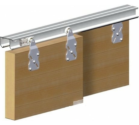 хороший комплект для раздвижных дверей. верхнее колесо подпружинено, поэтому не слетает с направляющей при движении полотна двери.