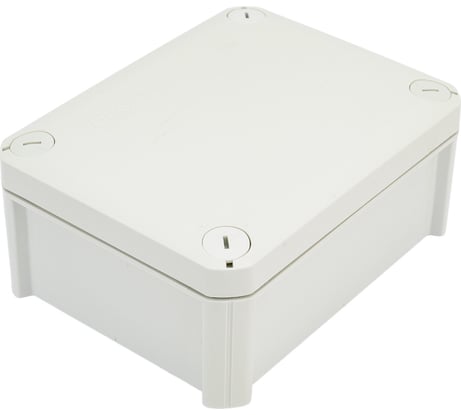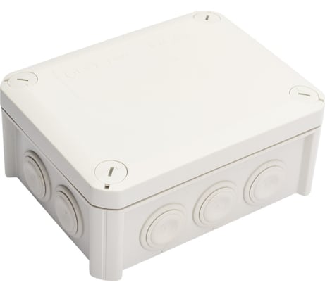 Компактная коробка OBO с защитой от брызг ip55. Резиновые срезаемые уплотнители на входах под гофру 16 и 20мм. Крышка на леске. Съемные заглушки на внутренних винтах под крепление.