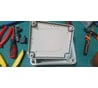 Белые коробки идут с индексом HF (halogen free). Классная коробка: под пистолет подходит идеально, невысокая, крышка застёгивается очень плотно. Из всего, что есть на рынке, эти - самые удачные. Покупаю их на монтажи электрики. Из недостатков - крайне неудобные вводы. В комплекте идёт оранжевый ключ-сверло, которым высверливается каждый ввод. Это крайне неудобно. Могли бы сделать ступенчатые вводы, которые легко и просто срезаются ножом, изменяя диаметр отверстия ввода.