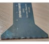 Непонятно чем руководствовался производитель, когда наносил на данную насадку надписи "металл/пластик" и "BIM". Если биметаллическая насадка обычно состоит из трех деталей соединенных сваркой: крепежной части, гибкого полотна и непосредственно режущей части из твердосплава. То тут всё заканчивается довольно гибким полотном с подобием 3D заточки зубьев. Из-за малой толщины и гибкости края полотна немного уводит. Форма заточки зубьев абсолютно не подходит для работы с любыми металлами.