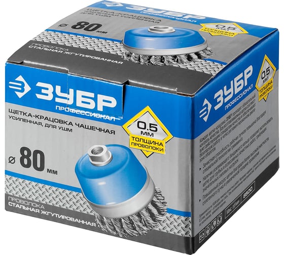 Щетка чашечная усиленная ЭКСПЕРТ (120 мм; 0.5 мм плетеные пучки стальной проволоки) для УШМ ЗУБР 3527-120_z01
