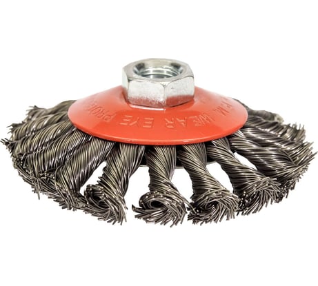 Вполне приличная щётка. Отцентрировал на глаз, биения не было. 115 надо использовать на 125 болгарку, иначе сильно разобьёт кожух. И защищайте лицо именно щитком - после работы весь истыкан кусками проволоки как ёжик. Но больше понравилось работать чашечной щёткой.