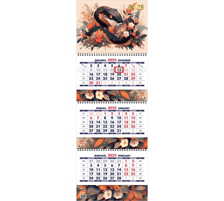 Отзыв Календарь квартальный ND Play Символ года 2 Змея Маркет на 2025 год 313088