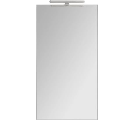 Простое прямоугольное зеркало со светильником. Я как раз такое искала: подошло и по размерам, и по форме. Подсветка хорошая, удобно красится перед зеркалом. Производитель известный, не первый раз беру у него мебель для ванной комнаты. Качество высокого уровня, не вызывает претензий.