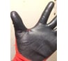 Перчатки яркие, красные, легко найти и обнаружить когда снял и забыл где - это плюс. В сравнении с другими аналогичными перчатками и в аналогичном ценовом сегменте показались менее прочными. Материал дышащий, крупная сетка, видна кожа рук если присмотреться поближе, это может быть плюсом в некоторых случаях. Прочность покрытия облетает просто от трения, очень слабая и не прочная, это видно на фото между большим пальцем, да и при работе указательным пальцем также долго не держится. Для работы с сантехникой (скрутки, наматывание льна, паста...), с болгаркой (с металлом - быстро сгорят) не подходят, очень быстро идут в расход.
