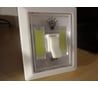 Хорошо держится на стене. Магниты дают возможность легко повесить на металлическую поверхность. Хорошо освещает небольшое помещение. Удобно включается.