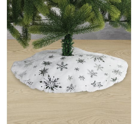 Отзыв Новогодний коврик под елку Золотая сказка белый, c серебристыми снежинками, 60 см, полиэстер 592158