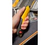 Мощный, суперкомпактный нож. Точная и качественная копия аналогичного японского ножа марки Tojima. Толстая, крепкая, лаконичная и ухватистая рукоятка полностью из твёрдой, не скользкой резины ( уникальное решение). Не нужны никакие вставки и украшательства. Толстая ( 1,2мм ) направляющая из хромированной магнитной стали ( как у всех, например, Olfa, хотя производители часто пишут о «нержавеющей стали» ) с острым и длинным носком - гарантия удобного и точного реза. Барашек и бегунок обычные, стандартные для таких ножей, но обеспечивают хорошую и надежную фиксацию лезвия при любом его выдвижении. Из представленных на фото 25-миллиметровых ножей только у ножа Gigant идеальная фиксация лезвия без люфтов засчет дополнительного минибарашка, но он просто огромный, для меня это минус. Комплектное лезвие очень неплохое, не хуже Olfa, Kraftool, Matrix, Inforce и т.п., меняется за 2 секунды.з