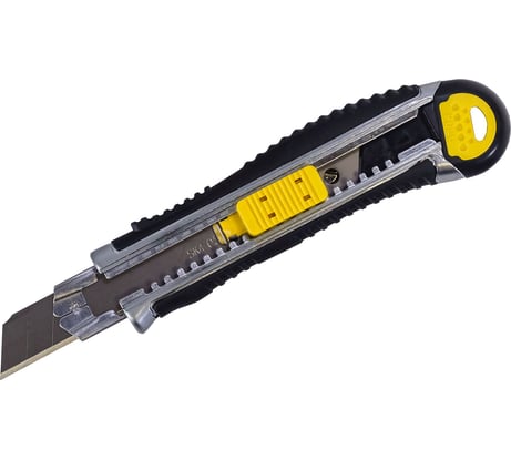 Хороший крепкий, тяжёлый нож из металла, прорезиненная рукоятка, бокс для хранения лезвий, хорошая фиксация лезвия, 2 лезвия в комплекте.