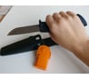 Слов нет- одни эмоции, он просто крут. Режет и пластик и буханку белого одинаково быстро. Лезвие ОЧЕНЬ толстое, с одной стороны на нем насечки-напильник. Чехол легким движением руки меняется на левую-правую сторону. Точилка есть, но первое время вы ее проигнорируете- очень хорошая заводская заточка (это вам не «зубр»)