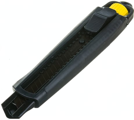 1. Усиленная направляющая лезвия. Сделана из листа толщиной 1 мм, что толще моих предыдущих ножей в 2 раза; 2. Легкая замена лезвий нажатием жёлтой кнопки без применения силы; 3. Фиксатор лезвия имеет выступ с которым легко перемещать лезвие. Фиксация лезвия четкая, без люфта; 4. На корпусе имеется упор под большой палец, приятная на ощупь прорезиненное покрытие; 5. Лезвие твердое, медленно тупится, шаг сегментации частый (примерно 3 мм), что увеличивает срок службы лезвия
