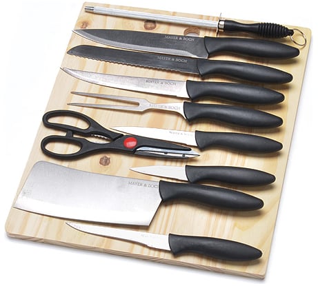 Нашёл только один - пришлось переточить, т.к. "из коробки" лезвие ножа заточено, острое, но при этом почему-то им трудно резать. То есть, он острый и хорошо режет, но при этом надо прикладывать довольно большое усилие. После заточки лезвия "под себя" стал резать легко и быстро, можно буквально за одно движение отхватить большой кусок мяса.