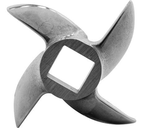 штамповка из черного проката, - мог бы быть вполне рабочим при качественной обработке, но режущие кромки сплошь в заусенцах, что очень травмоопасно при мытье, а во время использования может привести к микросколам и, как следствие, к попаданию металлических стружек в фарш. А это уже реальная угроза здоровью. Кроме того, режущая кромка одной из лопастей ножа оказалась не в плоскости с тремя другими, до решетки мясорубки на достает. В работе это чудо пока не пробовала и даже не решила, буду ли его доводить до кондиции, но, если бы заранее увидела этот нож, то не заказала бы точно. А так, - муж получил его, принес домой, - не нести же обратно. Придется, наверное, с этим ножом повозиться. Конечно, можно возразить, что товар очень недорогой, но и за недорого не вижу смысла приобретать некачественную и даже опасную вещь.
