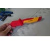 Пользуюсь как универсальным. Не только в электрике. Удобный нож всегда в помощь. Форма клинка располагает к различной работе. Хорошо держится острота. Подтачивать и править просто. Понравился.