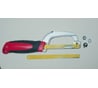 Хорошая ручка, которую можно заметно улучшить небольшой доработкой - при условии, что будут использоваться половинки обычного полотна 300мм. На фото показаны две простые доп. детали, позволяющие использовать штатное отверстие одной из половинок полотна (полотно 100% не покинет крепления, без сверх-усилий затяжки), и улучшающие "зацеп" второй половинки!