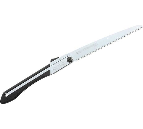 Ножовка шустрая, как и все из модельных рядов Gomboy, Bigboy и т.д. Высокое качество материалов. Рукоять стальная обрезиненная. Позволяет работать в две руки. Узел крепления, ключевое, чем отличаются японские Silky от большинства подражателей. Ось из винта со шлицом для закручивания, «гайки» (на оси которой в допуск посажено отверстие полотна), и плюс гроверная шайба для предотвращения раскручивания винта. Пружинный замок срабатывающий автоматически при приведении ножовки в боевое состояние. О полотне можно рассказывать очень много, но не здесь. Для незнающих только уточню - заточка с геометрией зуба «на себя». Будете пилить, толкать с усилием не надо. Протолкнули и с небольшим нажимом к себе. Теперь о минусе, что обнаружил в линейке с литерой Curve. Кривая линия описанная вдоль по кончикам зубьев имеет дугу R2000 (радиус два метра). Сделано это для увеличения времени контакта с древесиной. Понятно, что замысел хороший - скорость распиливания должна увеличиться. Но ножовки Silky ценны не скоростью, а удобством. Внимание: в линейках моделей с прямым полотном предусмотрено второе положение полотна для работы с низкорасположенными стволами. Здесь его нет! Одно положение и выгибайся как хочешь, если ствол ниже коленей. Из-за этого вероятность утыкания кончиком полотна в землю, грунт, камни и прочее, очень велика. В связи с выше сказанным, вердикт - Silky Gomboy 270 хороша, но больше подходит для труда на уровне высоты примерно от метра до вашего роста. Ниже можно, но очень внимательно и осторожно. В целом пила на твёрдые пять баллов. Или на десятку. Кому как нравится.