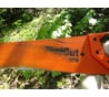 Обушок сделан из какой-то мягкой, самой дешевой пластмассы, поэтому жесткости почти не добавляет. Кроме того, он не плотно обхватывает полотно - с обеих сторон зазоры по 0,5 мм где-то, поэтому полотно в обушке болтается. Пришлось подклеить изоленту, чтоб все это пожестче было. Как-то это неправильно в пиле за 2000 р. Кстати, по штрих-коду производитель - Швеция, на упаковке написано Made in Japan, а на русской наклейке производство - Франция.