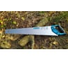 Качественное полотно для столярных работ, хорошо разведенные, острые зубья. Фанеру мягко "грызет", очень чистый рез. Немного непривычно поначалу, что ручка (кстати очень эргономичная) слегка уведена влево относительно геометрии полотна, сталкивался с таким эффектом очень давно, когда покупал первое свое ружье, еще возмущался, что продают с кривым прикладом, пока продавец не объяснил всю эффективность такого искривления для правшей при прицеливании.