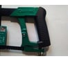 Рамка сборная из алюминиевого сплава, дужка посажена в рукоять и фиксирована винтом. Рукоять с эластомерным покрытием на небольшую/среднюю ладонь. Лежит удобно, на ощупь приятна. Покраска акккуратная, литье без дефектов. Пилки со штифтами, натяжение рифленой гайкой достаточно. Полотно в комплекте достаточно крупнозубое шаг примерно 1...1,25 мм. Шестигранный держатель не позволит установить полотно под 90 к плоскости рамки для длинного пропила што несколько непривычно.