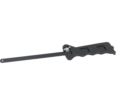сама ручка достаточно жесткая, но вот крепление ножовочного полотна плохое. Барашковая гайка маленькая, можно было бы и побольше, не очень удобно закручивать / зажимать полотно, с другой стороны винт с достаточно маленькой головкой (желательно менять на винт с той же резьбой но с большей головкой либо растачивать на больший диаметр винта). При прижиме полотна нужно закручивать барашек и одновременно отверткой держать винт от прокручиваяни - очень неудобно. При этом шайбочка которая прижимает полотно - маленькая, т.е. держать зажатое полотно будет плохо. Нужно вырезать из аллюминия полоску которая будет прижимать ножовочное полотно более плотно и надежно. В иоге весь крепеж под замену и доработку. Иначе будет одна морока при использовании.