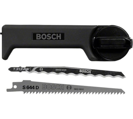 Пила по дереву в комплекте - от Бош, плюс острая пилка для лобзика - служила мне ножом, в ручку можно вложить пилки от лобзика. Ручка фиксирует даже обычно полотно от ножовки по металлу.