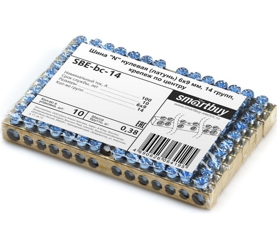 Шина EKF PEN, ноль-земля, 8х12мм, 16 отверстий, латунь, крепеж по центру PROxima sn0-125-16-c