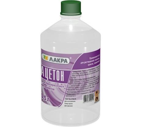 Ацетон мне понадобился для очистки малярного инструмента после работы с эмалью. И он справился на ура, кисти и валики отмылись полностью. Объёма хватает надолго, если использовать по назначению. Бутылка удобная, крышка плотно закручивается. Состав качественный, без лишних примесей. Также пробовал удалять следы клея и скотча, работает отлично. Рекомендую.