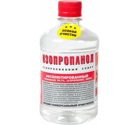 Первое фото бутылки (белые и красные цвета, стикер "особой очистки") отличается от того, что прикрепил другой покупатель и что получил я - бело-синяя этикетка без стикера. Это как так? Страна производства указана - Германия, но на полученной бутылке об этом ни слова, указана только ру фирма. "ZeepDeep"? Ни намёка, есть "SOLINS". Так же в описании указано, что не оставляет разводов и пригоден для оптики, "особой очистки", но я протестировал на стекле и после высыхания на стекле осталось заметное, полу-прозрачное "кольцо" сомнительного состава; довольно твёрдое и сухой салфеткой не стиралось. При высыхании "тестовой лужицы", наблюдались радужные разводы, другие спирты такого эффекта мне не давали. И это, на секунду, спирт за 520 рублей, 0.5л! "НЕРС+ Абсолютированный 99.9" стоил 330р за литр, при этом не отличается от этого "ZeepDeep", за который просят в 3 раза больше. Или Selkor за 394р/литр.. мне почему-то кажется, что изначально это был ZeepDeep и именно он на первом фото, а потом, каким-то чудом, в поставки затесалось "импортозамещение", по тихому. Для дезинфекции рук (разбав.) и не слишком требовательных поверхностей возможно сойдёт, может даже для протирки контактов или отмывки флюса с плат, но я крайне разочарован, что по факту - оптику этим чистить не выйдет. Переплатили за то, что можно было купить в большем объёме и дешевле.