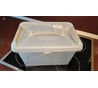 Одна из лучших серий ящиков для хранения. Штабелируются, прочные, не пропускают пыль и воду (в разумных пределах), легко моются. Довольно грузоподъемные. Данный ящик выдерживает минимум 9 кг (проверено, соль, крупа). Прозрачный - видно, что лежит. Крышки взаимозаменяемы у всей серии, ручки и защелки - одинаковые также. Большим плюсом (отразил на фото) является практически плоская крышка и ровные стенки - можно укладываеть более габаритные предметы. При этом он прочный, хоть и нет явных больших ребер жесткости. В случае поломки легко сваривается обычным паяльником. Защелки прочные и удобные.