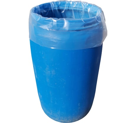 Прочный полиэтилен, ширина выбрана так, что вкладыш плотно облегает стенки стандартной 200-литровой бочки. Что, к сожалению, нельзя сказать о его высоте...
