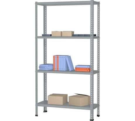 Отличный стеллаж. Весь крепёж в комплекте, 2 гайки даже остались в запас) Покупал для инструментов дрель, шуруповерт и тд. 3 кейса свободно вмещаются в один ряд, остается еще место на полке для чего-то поменьше. Самое тяжёлое на нем у меня точило 18-20 кг, полка не провисла. Доволен покупкой.