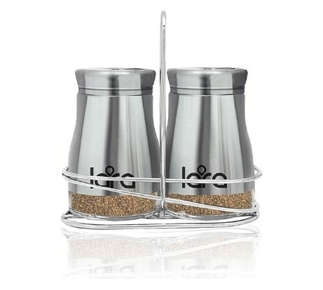 Ёмкости большие и удобно лежат в руке. Несколько размеров отверстий позволяют использовать любую соль. Но у крышки большой люфт. И главное - подставка чуть меньше чем нужно. Ёмкости в неё одновременно не помещаются. И если крепление крышки можно подплющить убрав излишний зазор, то с этим не справиться.