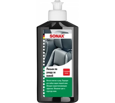 Лосьон по уходу за кожей SONAX 0,25л 291141 купил для ухода за кожей на руле и на манжете КПП. Понравилось как работает состав. Смягчает и питает кожу. Чистящего эффекта не наблюдаю. Скорее это средство для ухода, для продления хорошего состояния поверхности.