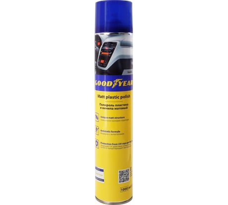 Матовый полироль пластика Goodyear green tea, аэрозоль 400 мл GY000713 купил для ухода за пластиковыми элементами в салоне автомобиля. Так выходит, что применяется средство не часто. Для эффекта следует наносить экономно и использовать нормальный аппликатор. Энергично распределить и располировать.