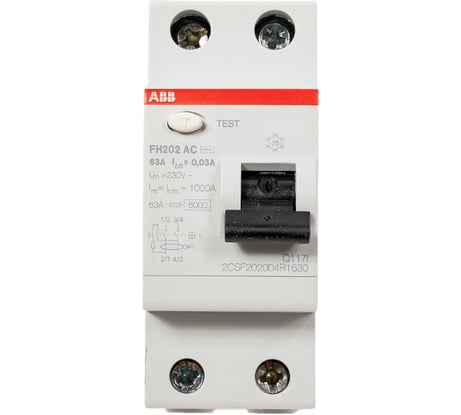 https://new.abb.com/products/2CSF202101R1630/f202-a-63-0-03 Зажимать контакты нужно отверткой PZ2 (а не PH2), тогда контакты не слижутся. Фазу можно подключить по левой или по правой ветке. Входы фазы и ноля -- можно сделать оба сверху или оба снизу. Об этом говорят обозначения "1/2" и "3/4" на схеме, напечатанной на лицевой панели УЗО, а также бумажное описание. Такая свобода в выборе направления и полярности подключения позволяет использовать для связи с соседними автоматами шину 2CDL620011R1012 (штыри чередуются через один модуль), либо шину 2CDL210001R1012 (штыри входят в каждый модуль). Наличие красно-зеленого индикатора включения-выключения делает это УЗО заметно дороже его братьев, но имеет сомнительную ценность, ибо, похоже, просто механически привязано к положению синего рычага.