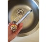 Хорошие габариты и способ крепления к мойке посредством накидной гайки с удобным захватом под руку. Отлично держится на тонкой нержавеющей мойке и поворачивается на 360 градусов.