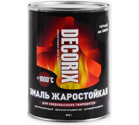 Отзыв Жаростойкая эмаль для сверхвысоких температур Decorix (до +1000 градусов; матовая; чёрный; банка 0.8 кг) 0752-01 DX