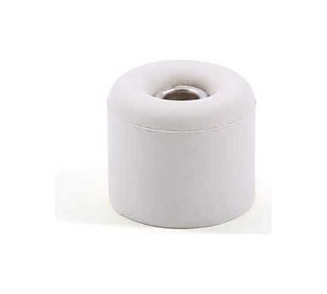 В меру мягкая резина, прикрутил к стене. При сильном ветре дверь, с очень сильным усилием ударила по ней, стопор сработал на 100%.