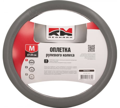 Отзыв Оплетка руля REDMARK экокожа, М размер, серый RM78003