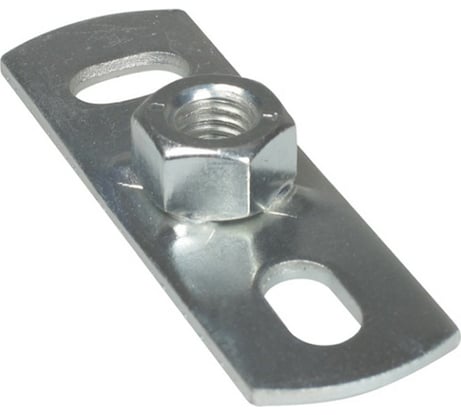 Высота гайки мала. Особенно, если крепить трубу с помощью болта с резьбой 10 мм. Если крепить болтом (шпилькой) диаметром 8 мм, то будет провис на 1 мм у конца гайки. Этот провис увеличится при подходе к трубе. Показалось, что точечная сварка гайки к основанию пластины не обеспечит должную прочность.