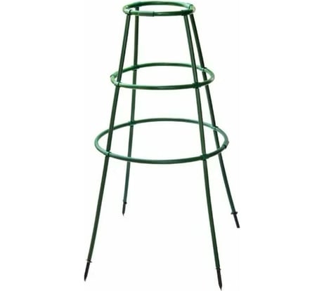 Высокий, прочный. Пластик не производит впечатление ломкого. После сборки диаметр "по низу" 75-80 см. Сборка-разборка 5-10 минут без инструментов, на зиму легко убирать. При наличии фантазии и необходимости высоту можно и увеличить с помощью арматурин с диаметром примерно 18 мм. Отдельно скажу о соединении колец - они разумно гибкие. Наверное, если что, подойдут и отрезки шланга 2/3". Кстати, и на всю высоту его можно не собирать, а один из обручей (особенно нижний) использовать как отдельный кустодержатель.