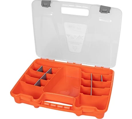 Размер и форма идеально подходит для моих инструментов и расходников - давно искал подобный кэйс по адекватной цене. Перед покупкой несколько смущал яркий оранженый цвет, т.к. хотелось серый или черный, но на практике оказалось что оранжевый очень удобен, т.к. на его фоне легко найти мелкие винтики и наконечки внутри ячейкек при плохом освещении. Замки защелкиваются и фиксируют крышку нормально, но при этом имеют "холостой ход" в защелкнутом состоянии - дискомфорта это не вызывает.