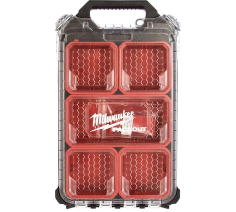 Хоть это и Милуоки, но заточено под самую мелкую расходку. Лишь чуть-чуть габарит предмета превышает 35 мм и у вас проблемы. внутренний размер восьми малых ячеек 82*82 мм, диагональ 112 мм. внутренний размер двух больших ячеек 82*190 мм, диагональ 200 мм. Средняя поперечная ячейка, несъемная и неразборная, - 50*290 мм. Высота всех ячеек, повторюсь,- 35 мм. В принципе, все недостатки - следствие уменьшенных габаритов, просто взять и навалить в него все что хотелось не получится, даже биты милуоки 89 мм толком в малые ячейки не ложатся, наполняемость лотков примерно 60%, иначе не закроется крышка.С американскими ящиками красного цвета стыкуется,однако по моему мнению предназначен все же для транспортировки в горизонтальном положении, иначе прозрачная верхняя крышка скоро станет матовой из-за постоянно перемещающейся расходки (как и в любом другом органайзере). Был приобретен на замену Стэнли сортмастер stst1-70720, чтоб освободить место в среднем чемодане и сделать облегченный постоянный доступ к расходке не переворачивая вверх дном средний чемодан. Так вот в милуоки вошло на рулетку больше , чем в стэнли, при вдвое больших габаритах и впятеро большей цене (835 против 4320), но зато это милуоки, это packout, это вся мелочь отдельно от основного чемодана и вместе с тем всегда под рукой.