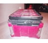 Мощная конструкция Неплохая система крепления Удобная ручка Уплотнение в крышке, практически герметичен Можно использовать с лотками и без