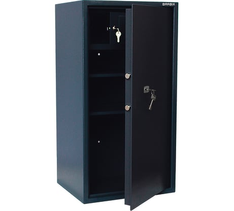 Сейф крепкий, масса солидная. Ключевой замок работает чётко, полки снимаются удобно. Отлично подходит для хранения документов на стройке.